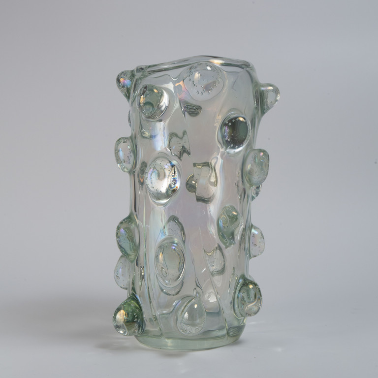 Un vaso in cristallo iridato a mugnoni.