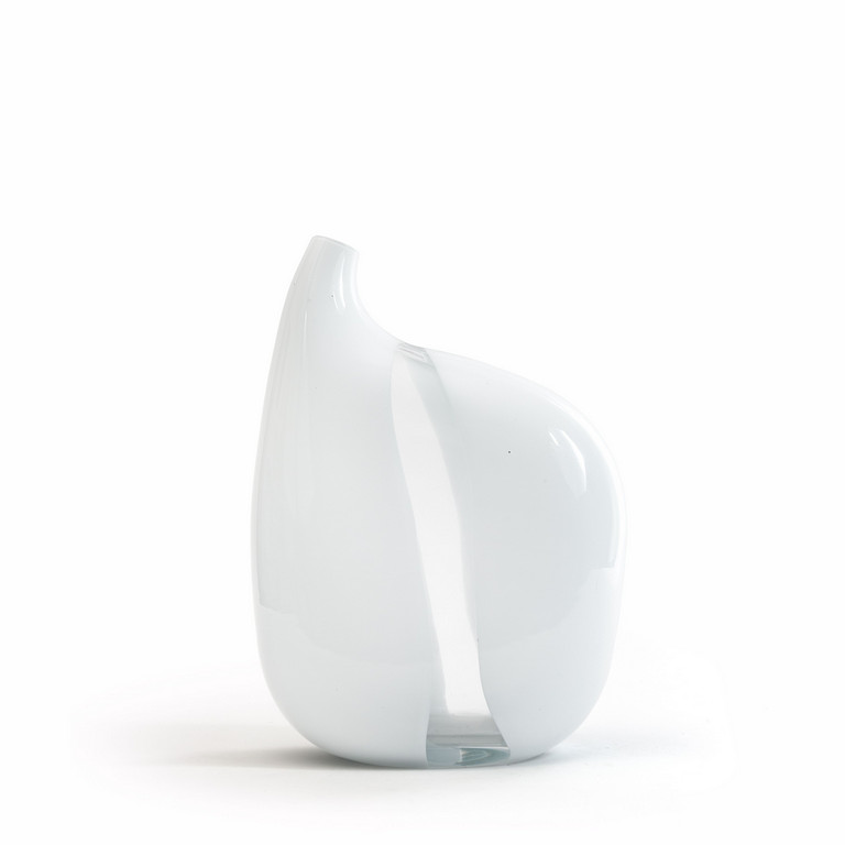 Un vaso in vetro lattimo con fascia verticale cristallo.