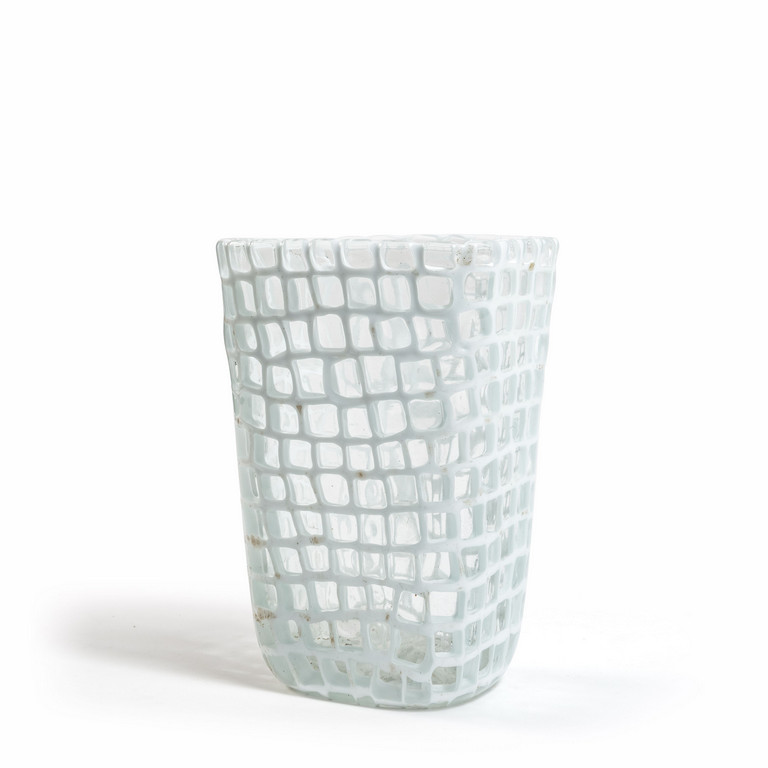 Un vaso 'occhi' in vetro a murrine lattimo con nucleo cristallo.