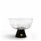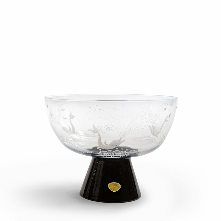 Coppa con delfini in cristallo inciso e piede conico in pasta vitrea nera anni '30
