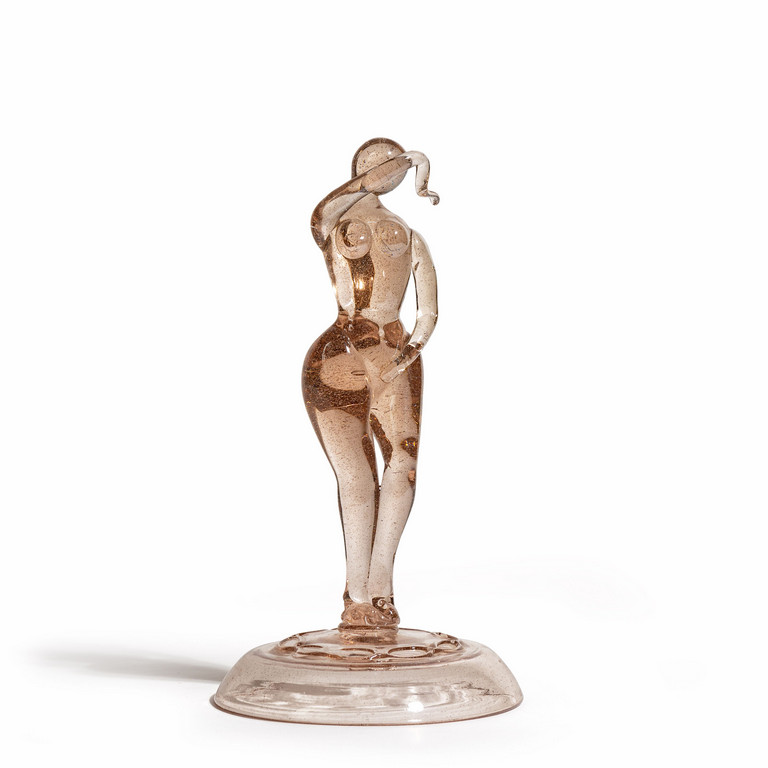 Una figura di nudo femminile in vetro trasparente a bollicine.