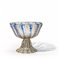 Una coppa in cristallo decorato da gocce blu sulla costolatura e foglia oro.
