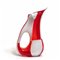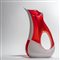 A vase with a perforated hole made of juxtaposed red and white glass canes.