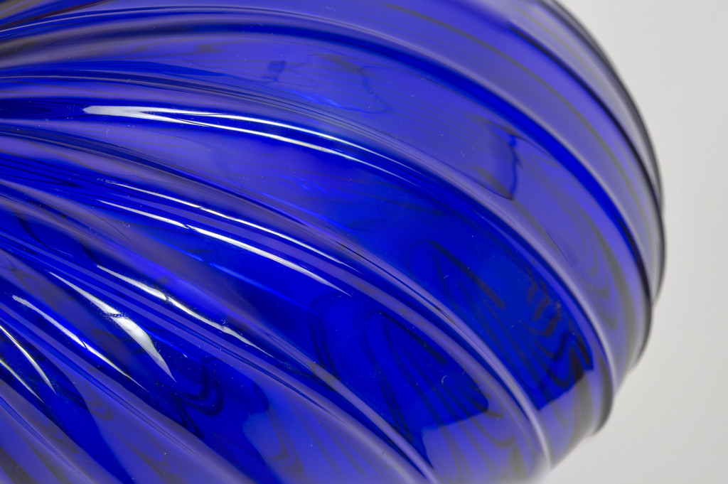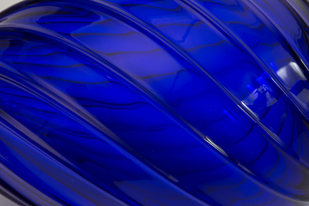 Un vaso ovoidale blu zaffiro a coste ritorte anni '90.
