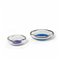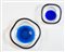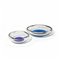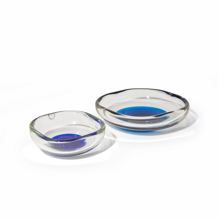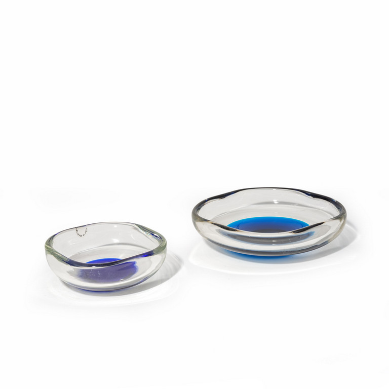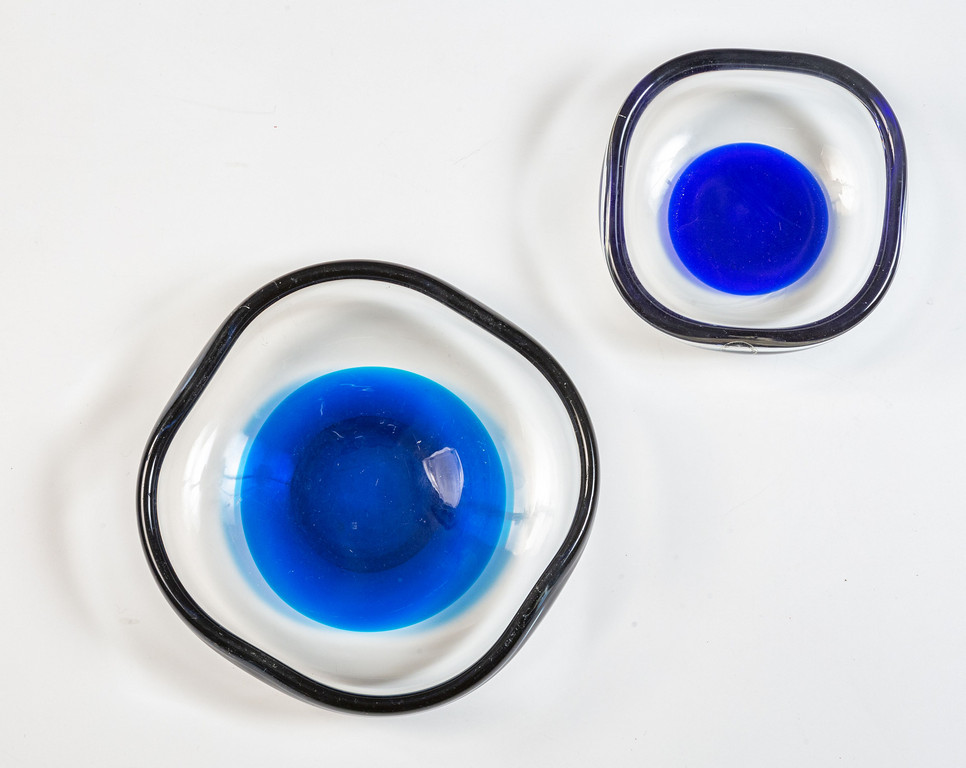 Due coppe quadrate in cristallo con macchia blu centrale.