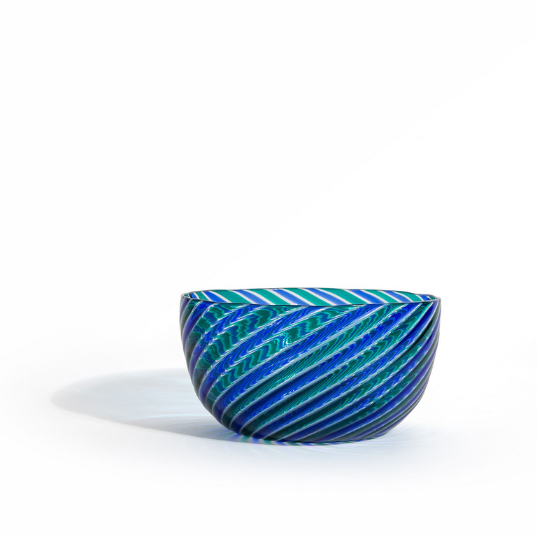 A bowl made of twisting colored canes.