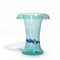 A large transparent azure vase with a circular murrine design and with a turned in rim.