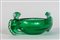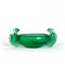 A bowl in transparent green glass with two lateral handles in the form of cameleons.