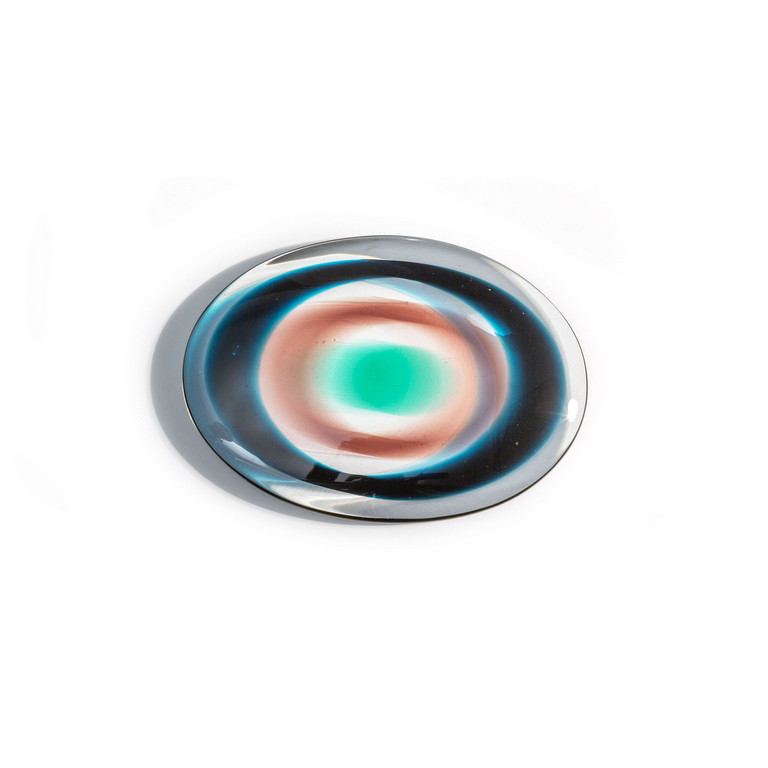 Una rara murrina ovale ad anelli colorati con custodia in pelle anni '70