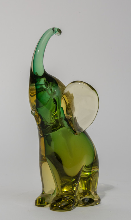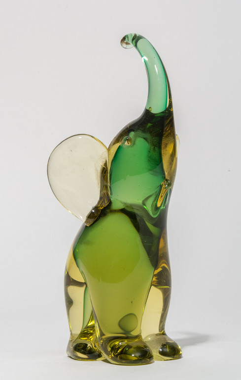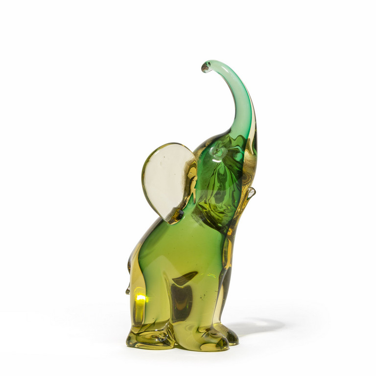 Una figura di elefante in vetro sommerso trasparente giallo-verde.