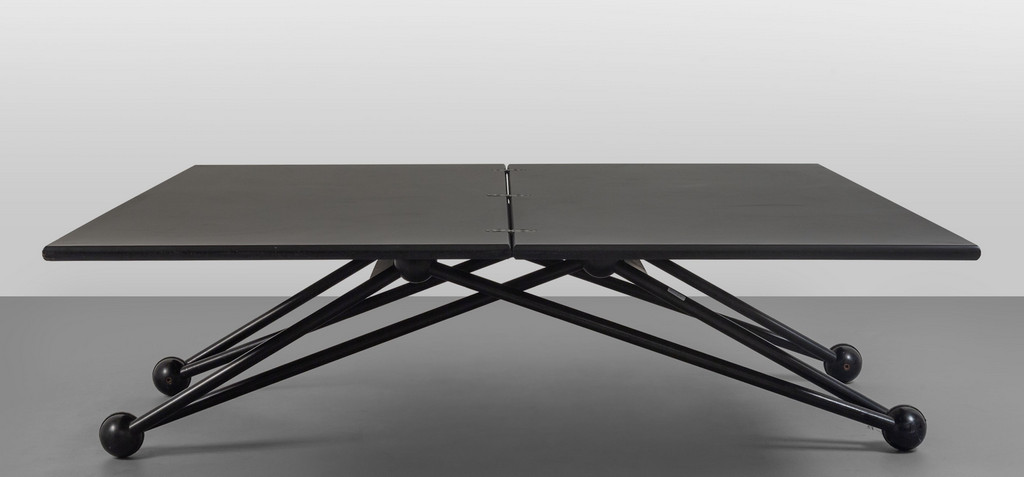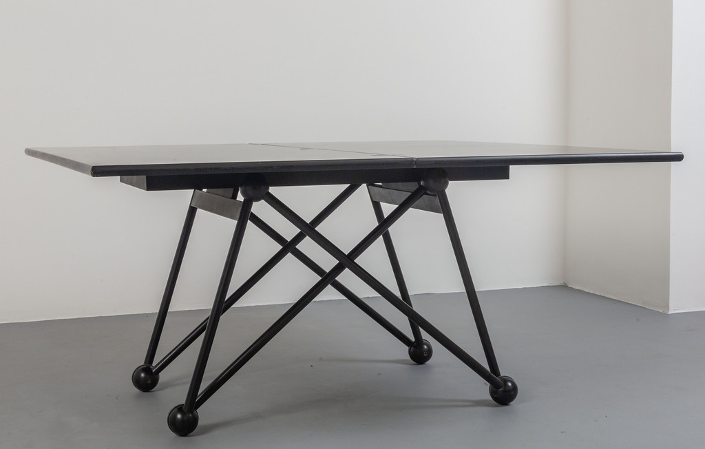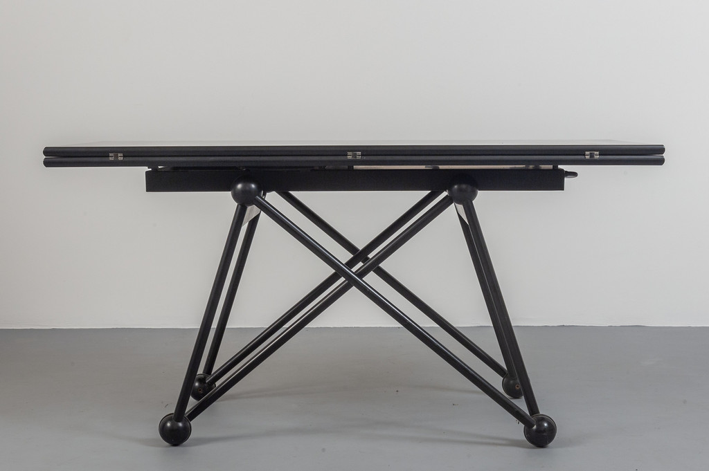 UN TAVOLO TRASFORMABILE, anni '80. <br>Acciaio