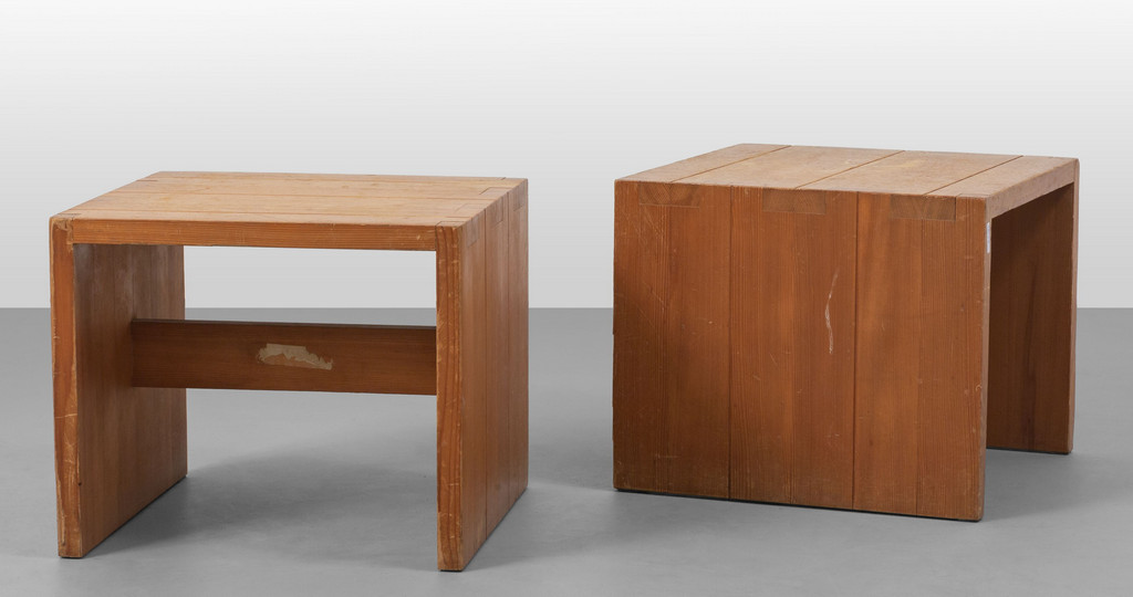 Lotto 3227 | DUE SGABELLI, anni '60. <br>Legno di pino. <br>Cm