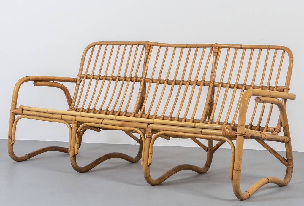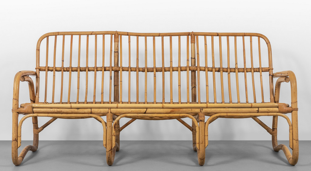 UN DIVANO, anni '60. <br>Malacca, giunco e canna
