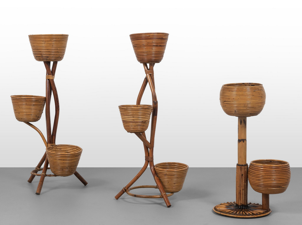 TRE FIORIERE, anni '60. <br>Malacca, giunco e