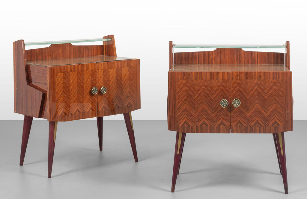 DUE COMODINI, anni '60. <br>Gambe di legno tinto