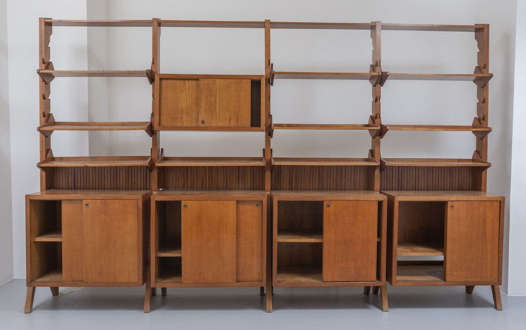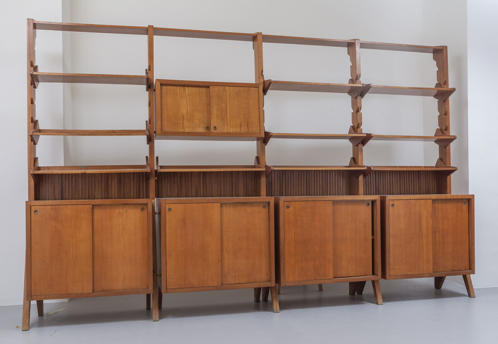 UNA LIBRERIA, anni '60. <br>Legno di ciliegio,