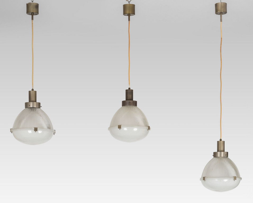 TRE LAMPADE A SOSPENSIONE, anni '60. <br>Ottone,