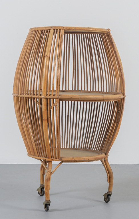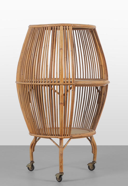 UN MOBILE-BAR, anni '60. <br>Malacca, giunco,