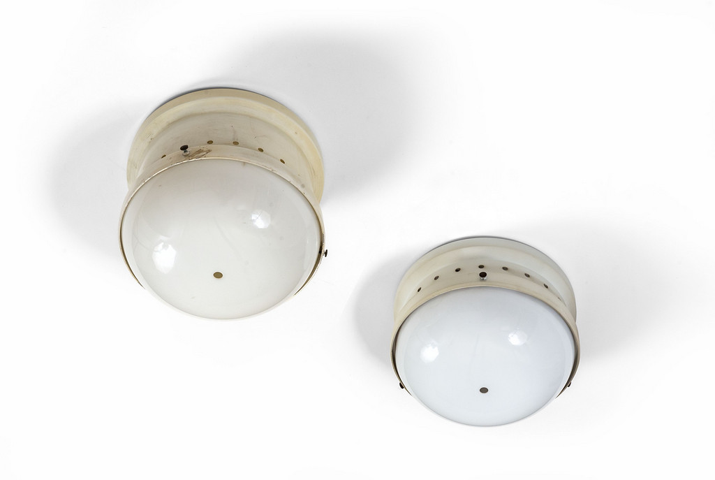 DUE PLAFONIERE, anni '60. <br>Alluminio laccato,