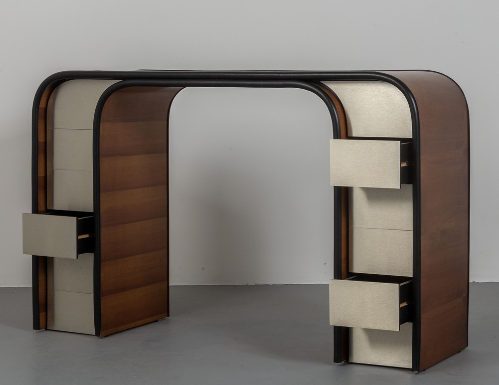 UNA CONSOLE, anni '60. <br>Legno impiallacciato