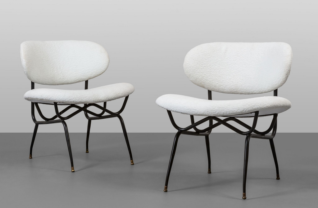 Acciaio tubolare verniciato, ottone, sedili e schienali imbottiti