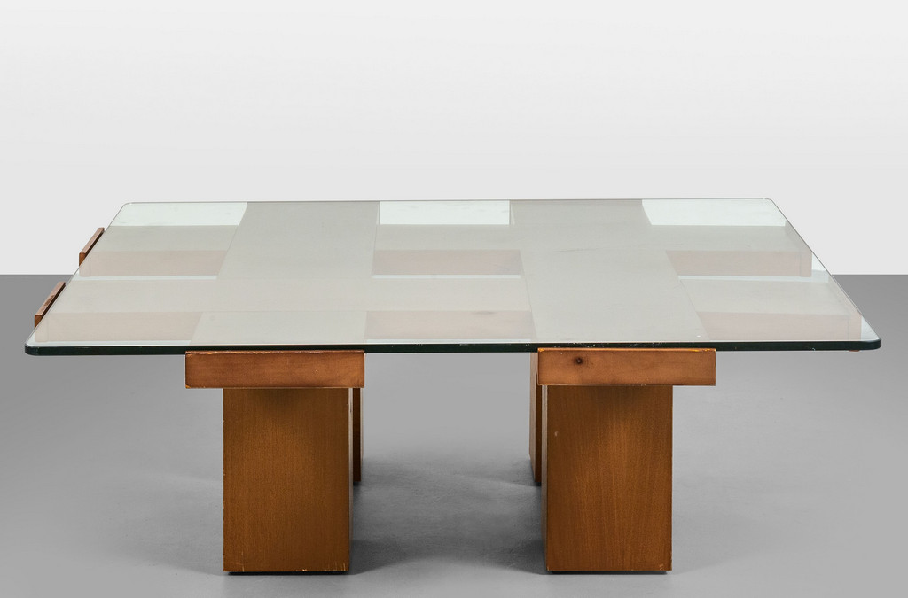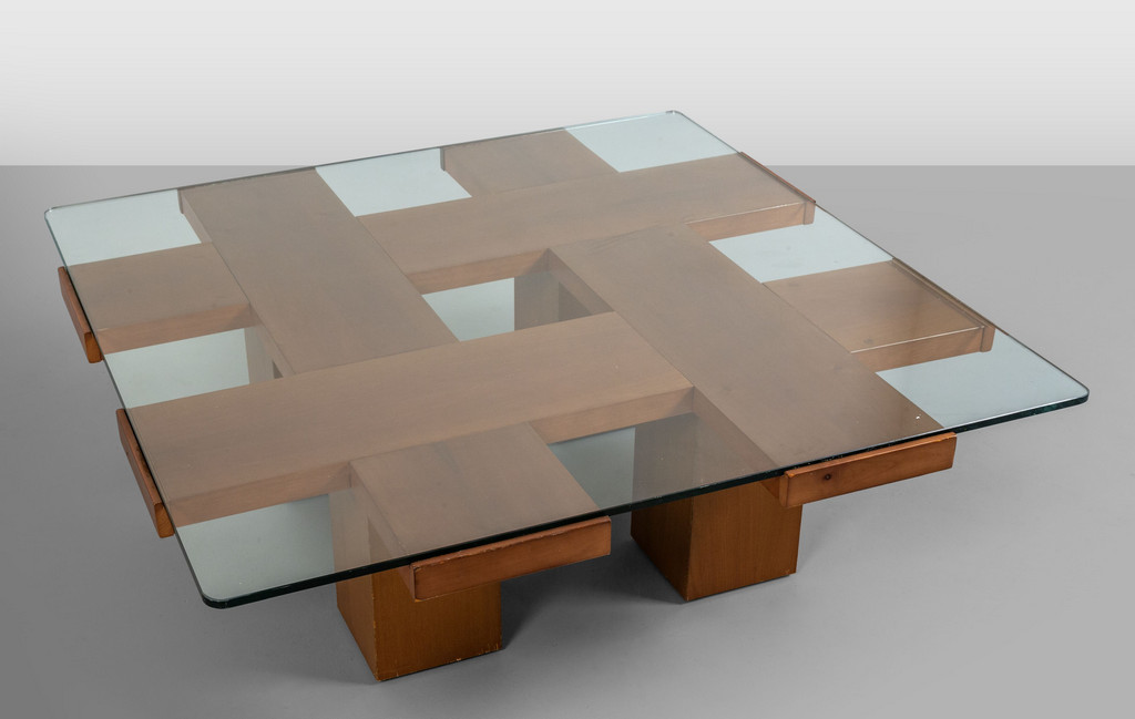 UN TAVOLINO, anni '70. <br>Legno di noce, legno