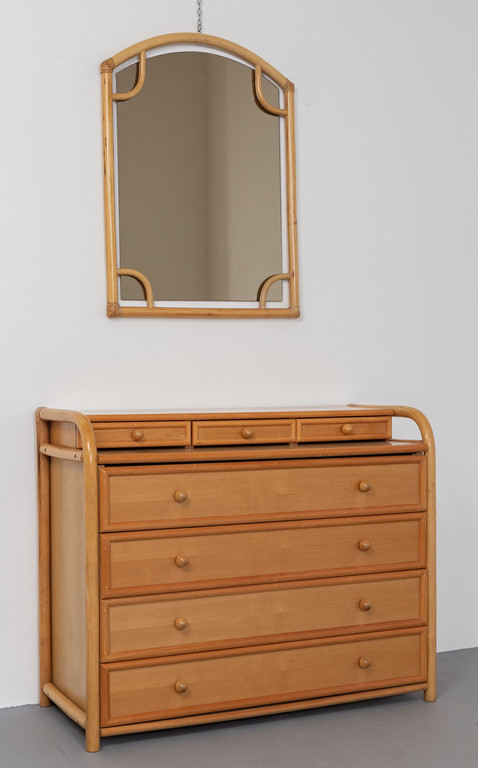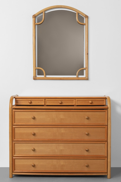 UNA CASSETTIERA CON SPECCHIO, anni '70.