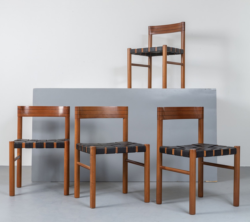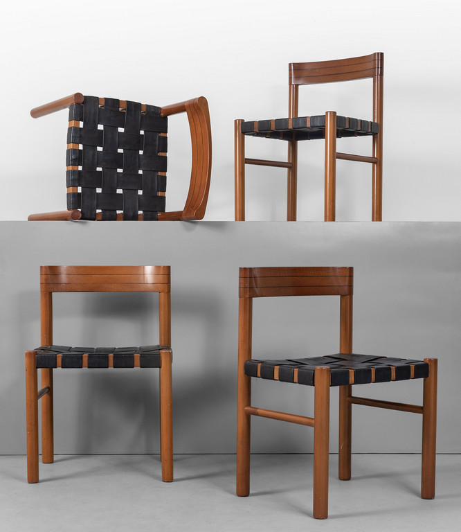 QUATTRO SEDIE, anni '70. <br>Legno di faggio,