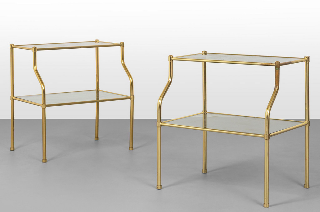 DUE COMODINI, anni '70. <br>Ottone, cristallo