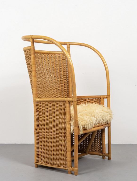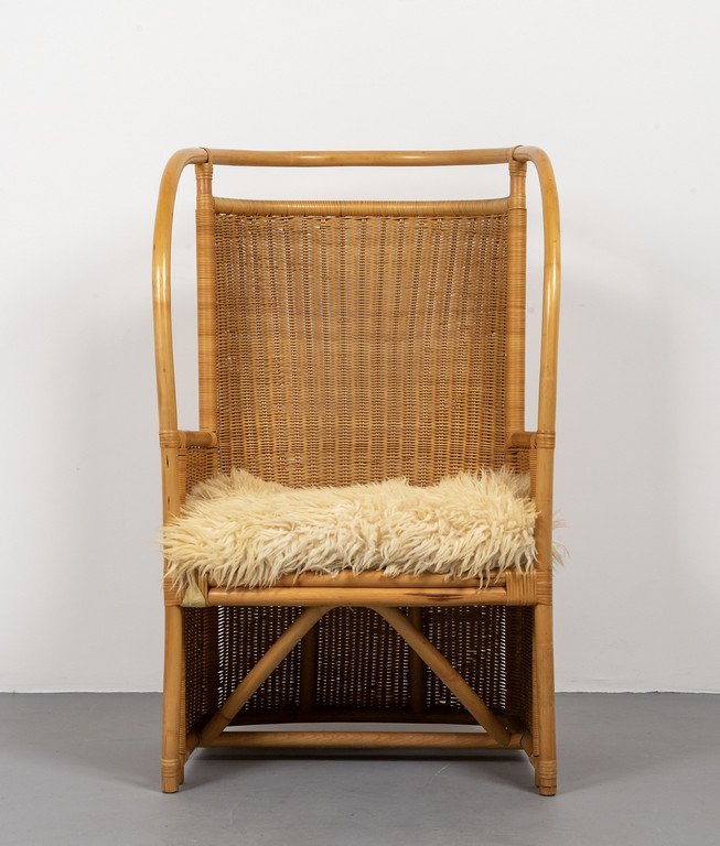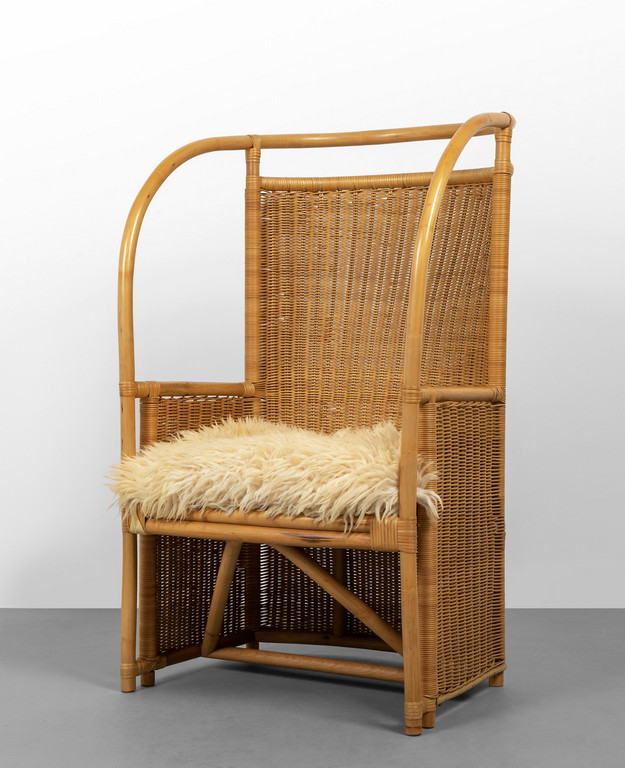 Lotto 3494 | UNA POLTRONA, anni '70. <br>Rattan, midollino,