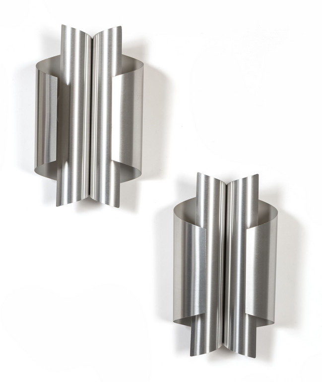 DUE LAMPADE DA PARETE, anni '70. <br>Lamierino di