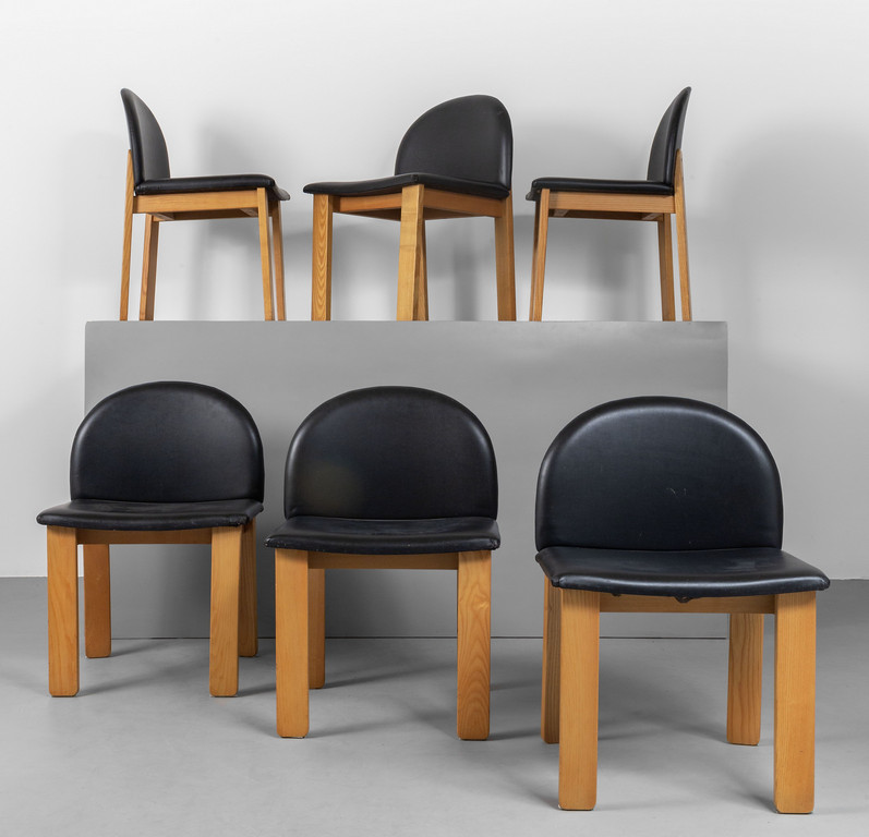 SEI SEDIE, anni '70. <br>Legno di frassino,