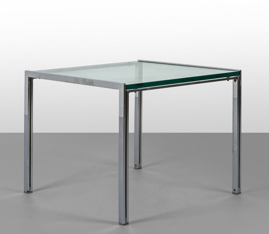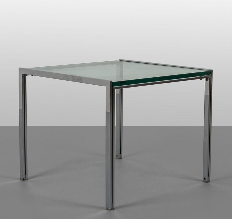 UN TAVOLINO, anni '70. <br>Acciaio cromato,