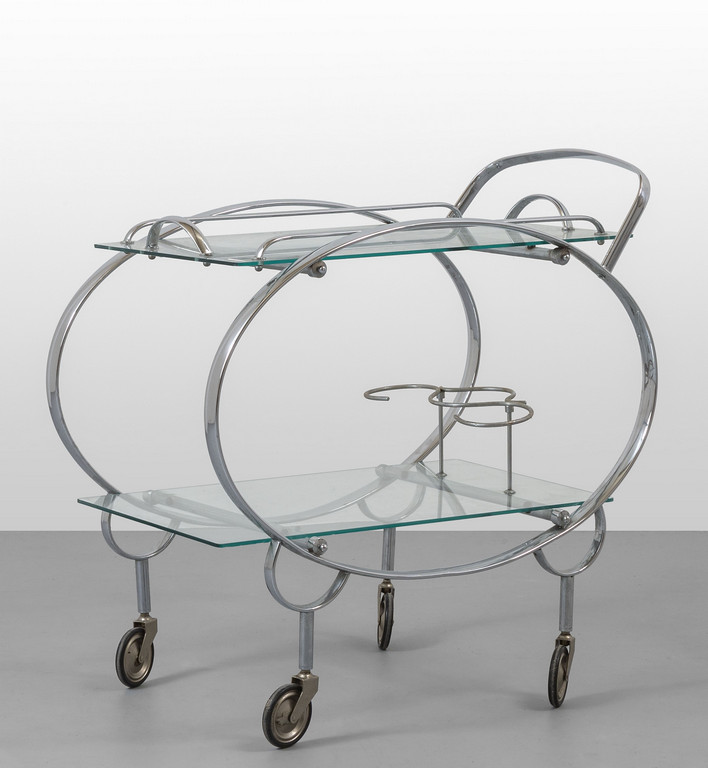 UN CARRELLO, anni '80. <br>Acciaio inossidabile,
