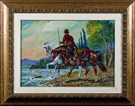 Giovan Francesco Gonzaga (1921-2007) Buttero al guado, 1997 Olio su tela cm...