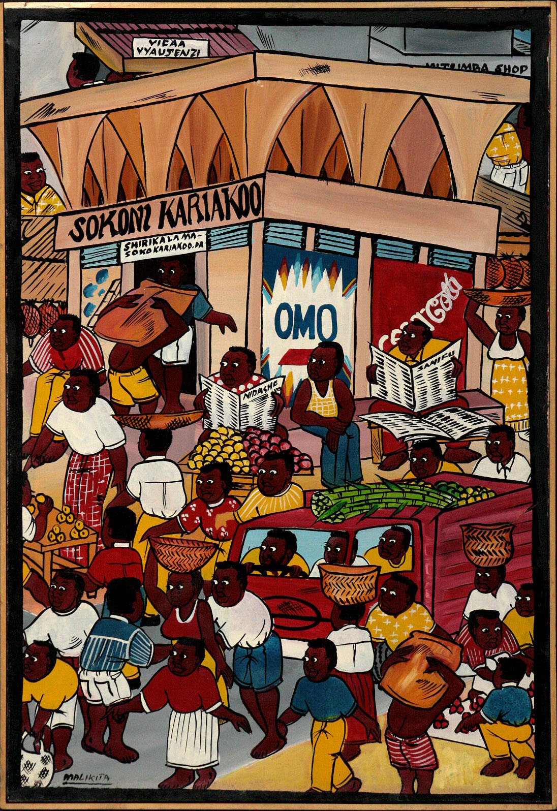 Maurus Michael Malikita (1967) Sokoni Kariakoo Olio su tela cm 73x50 Firma in...