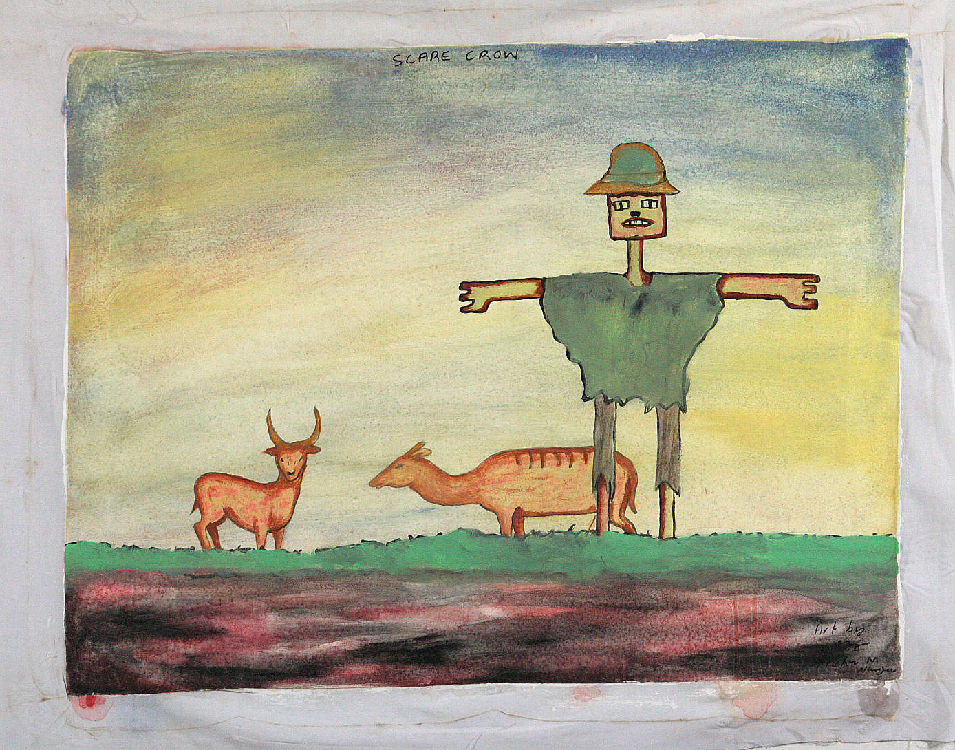 Lotto 214 | Peter M. Wanjau (1968) Scare crow Olio su tela cm 50x65 Firma in basso a destra
