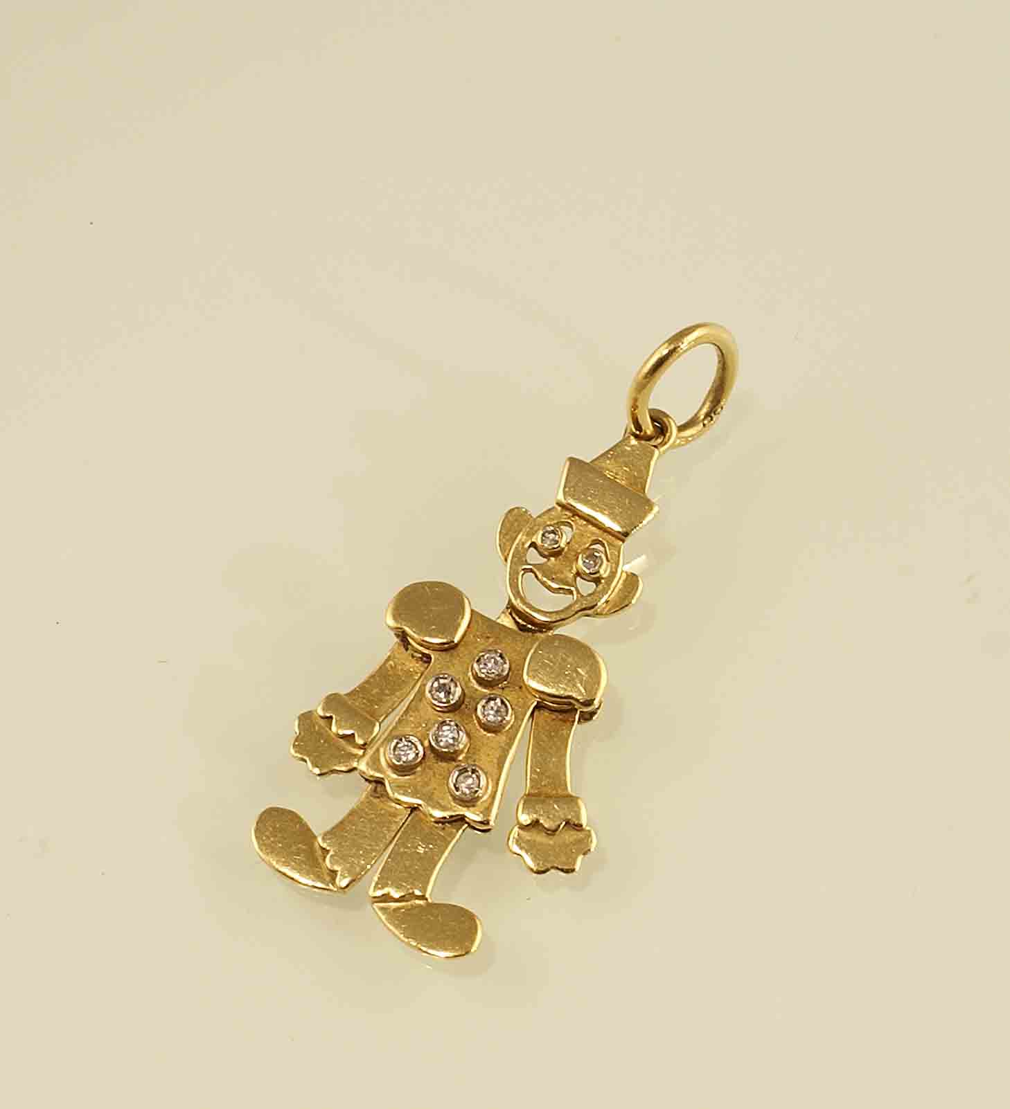 Pendente Pinocchio in oro giallo 18kt con incastonati diamanti taglio brillante per 0,08 punti circa, gr. 4,6.