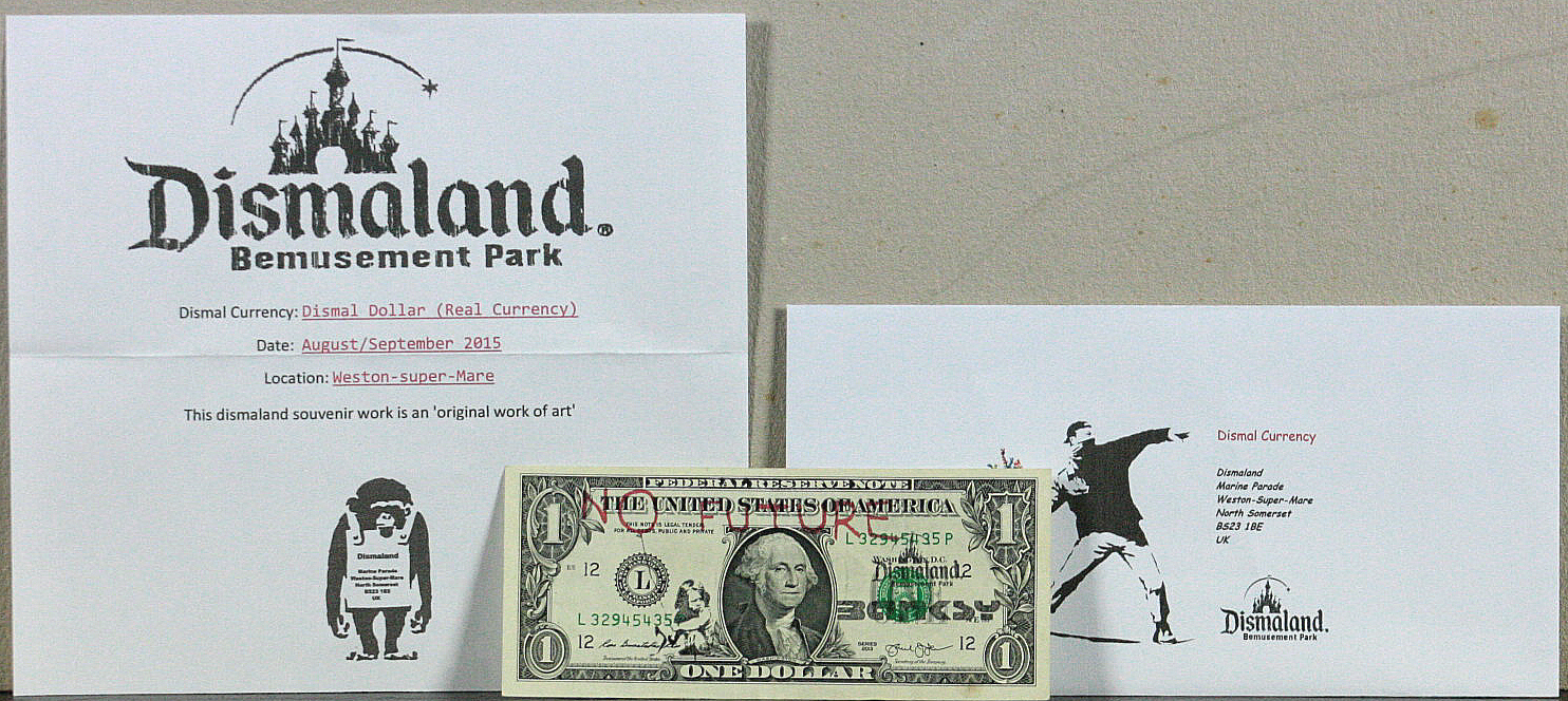 Banksy (1974) Dismal currency (One Dollar) Banconota da 1 dollaro e stencil....