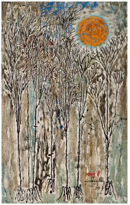 LAXMAN PAI (1926 - 2021) Trees, Londres, février 1959 Huile sur toile...