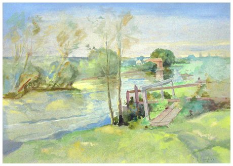 LUIGI CHIALIVA Caslano (Svizzera) 1841 – Parigi (Francia) 1914 Paesaggio fluviale con ponticello 1874 / 1880 Acquerello su cartoncino 27,5 x 40. Firma in b. a d. Certificato di autenticità e provenienza Telemarket, Roncadelle su foto con firma Roberta Binda. Certificato di autenticità e provenienza Telemarket, Roncadelle. Pubbl.: “Luigi Chialiva” cat. mostra Showroom Telemarket, Roma, 16 maggio – 30 giugno 2001, Giorgio Corbelli Editore, Brescia, p.40.