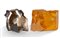 Sculpture in two parts, glass and bronze, signed and dated on the glass block