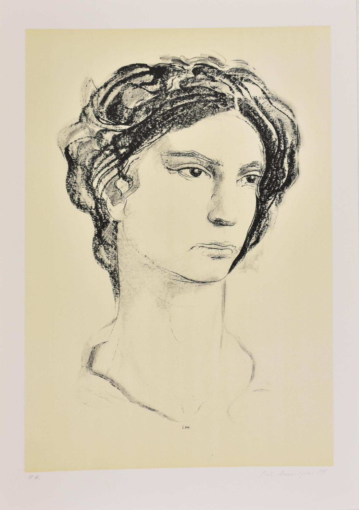Pietro Annigoni RITRATTO litografia su carta, cm 70x50; es. prova d'autore firma