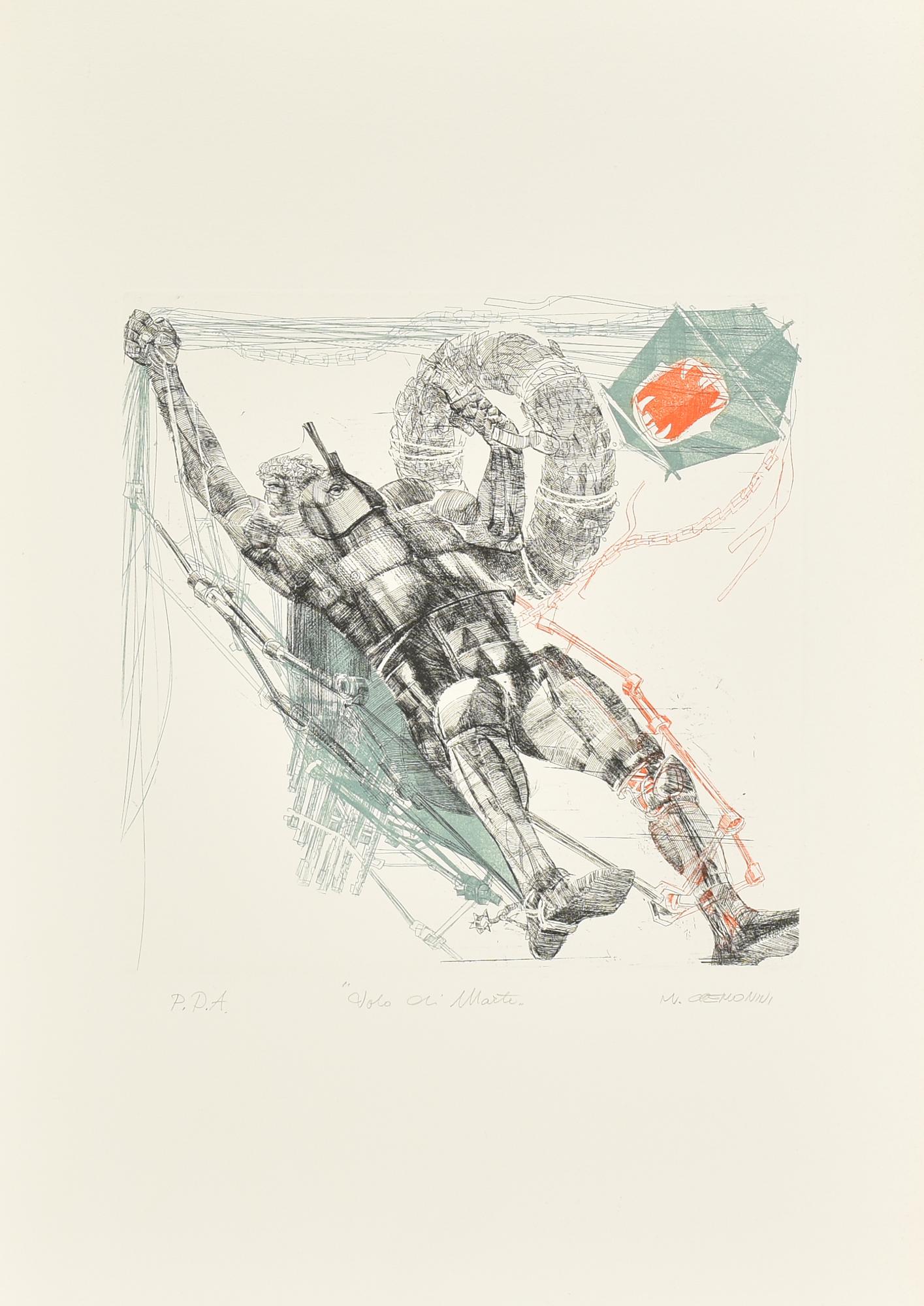 Walter Cremonini VOLO DI MARTE incisione su carta, battuta cm 24x25, su...