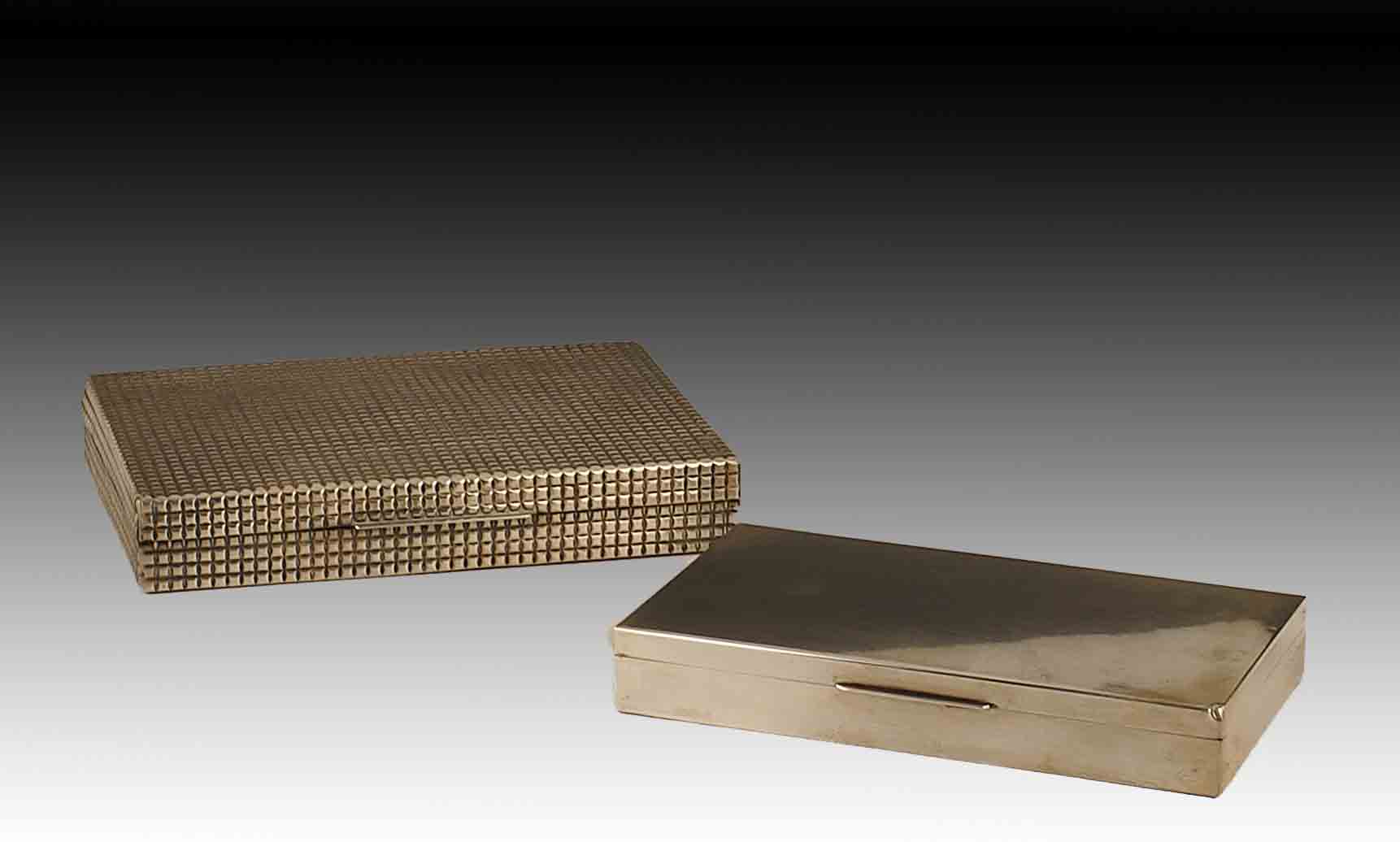 Lotto composto da due scatole rettangolari in legno e argento, misure diverse (lievi difetti).