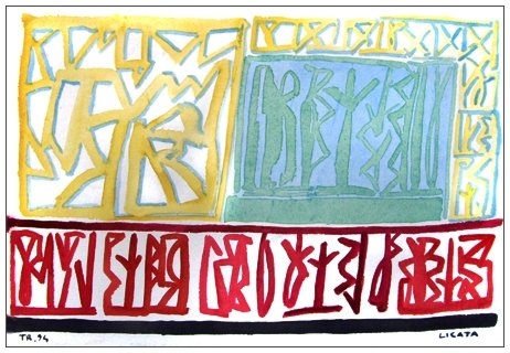 RICCARDO LICATA Torino 1929 Senza titolo 1994 Acquerello su carta intelata 22 x 32. Firma in b. a d., località e data in b. a s. Autentica dell’autore su foto.