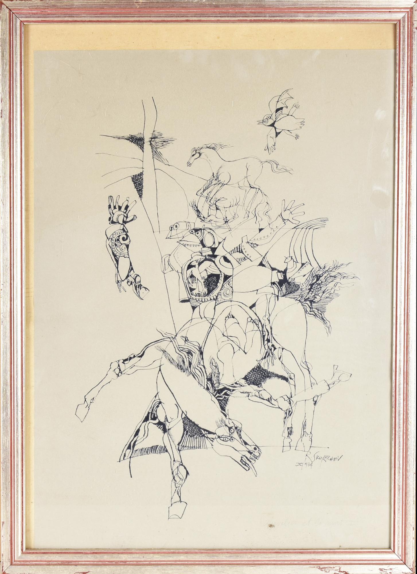 R. Skortchev ASSISTENDO AD UNO SPETTACOLO DI IBERNAZIONE china su carta, cm...