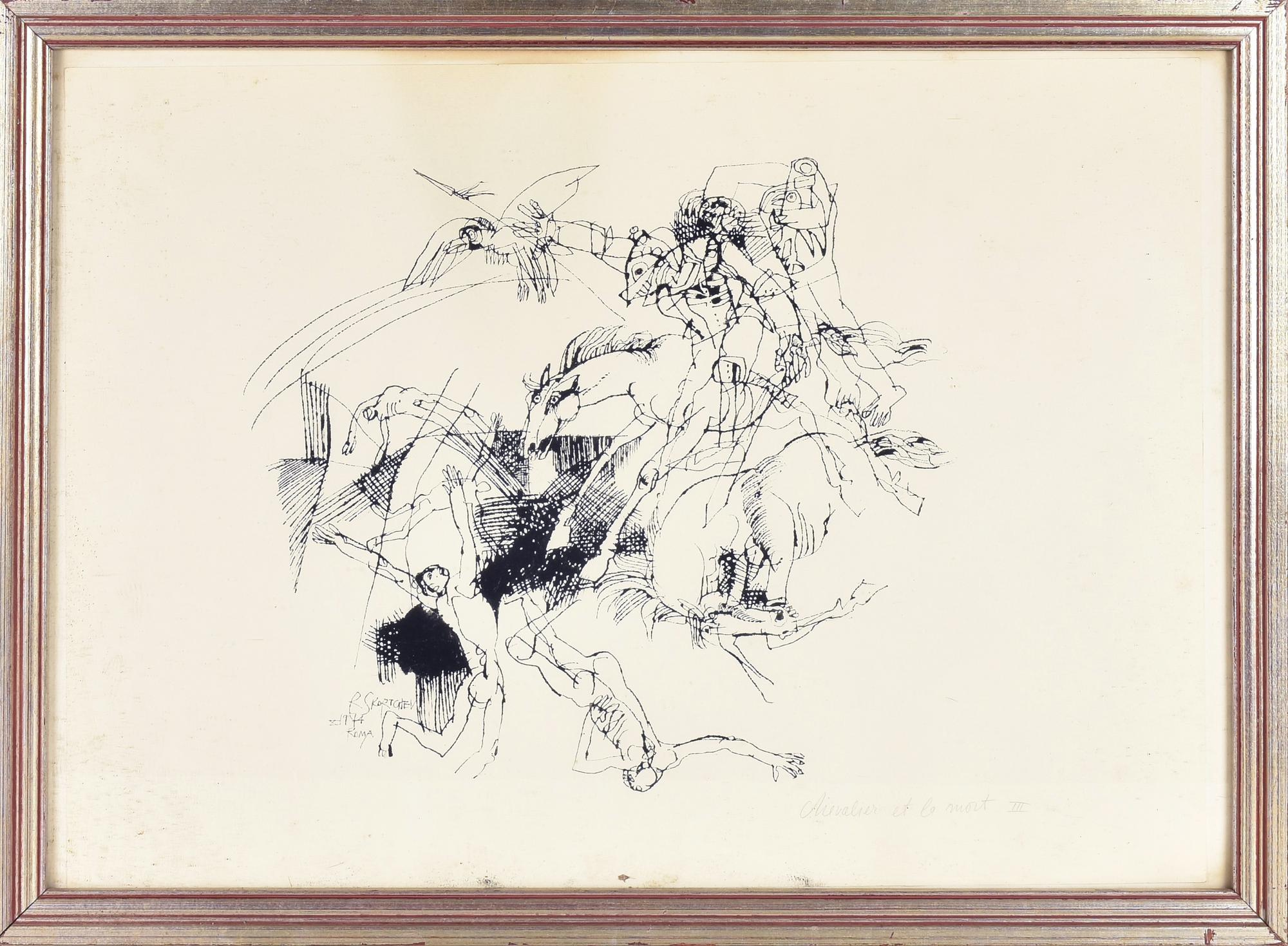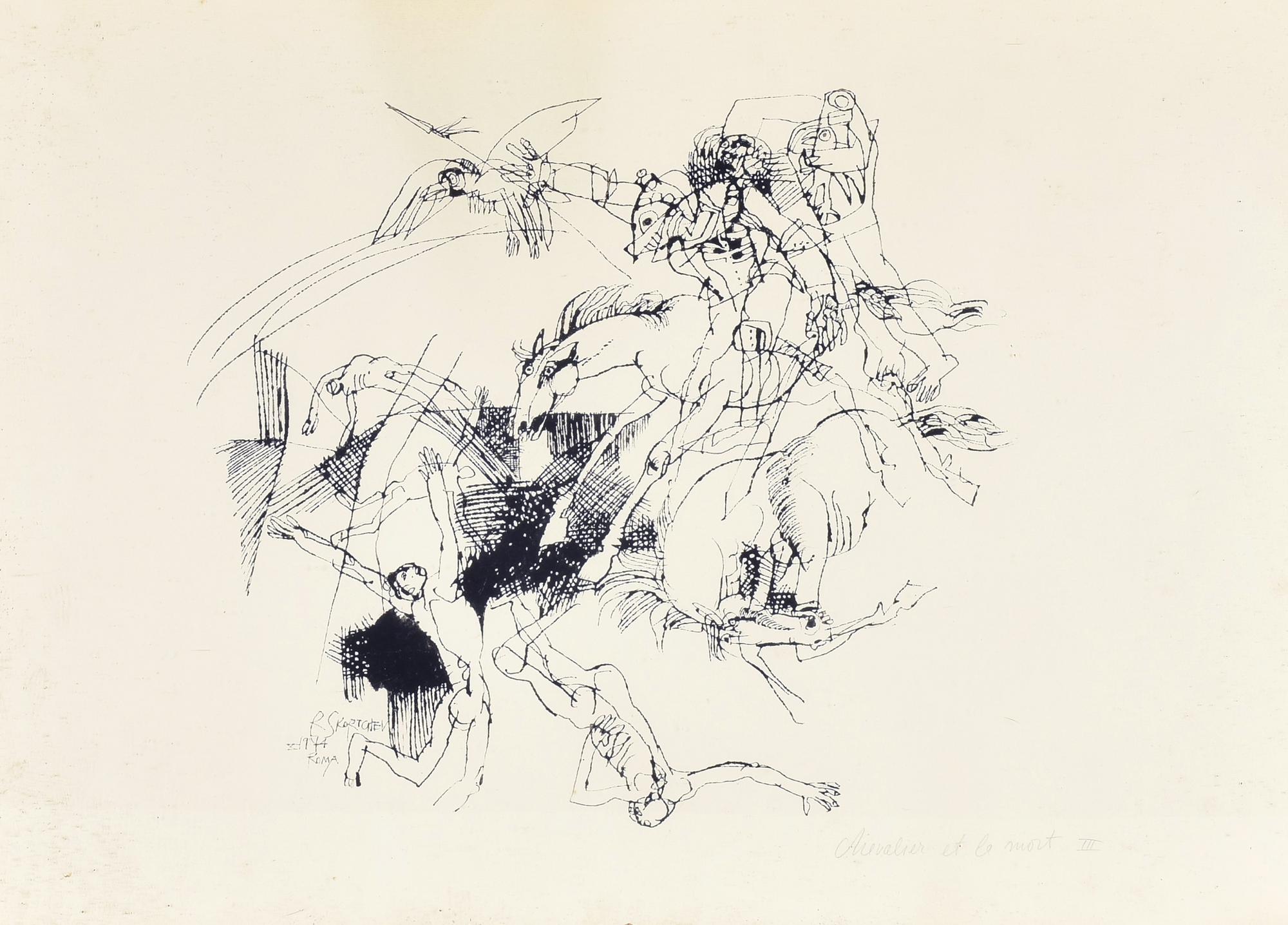 R. Skortchev CHEVALIER ET LA MORT III china su carta, cm 50x70 firma e data...