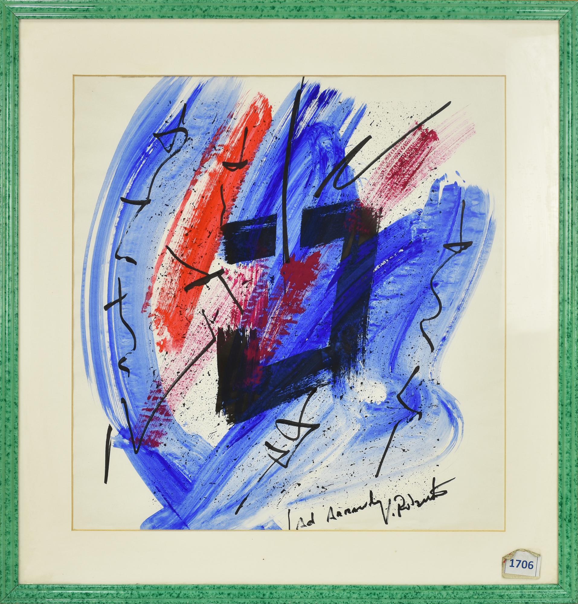 Roberto Vincenzo COMPOSIZIONE tecnica mista su carta, cm 60x57 firma e dedica...