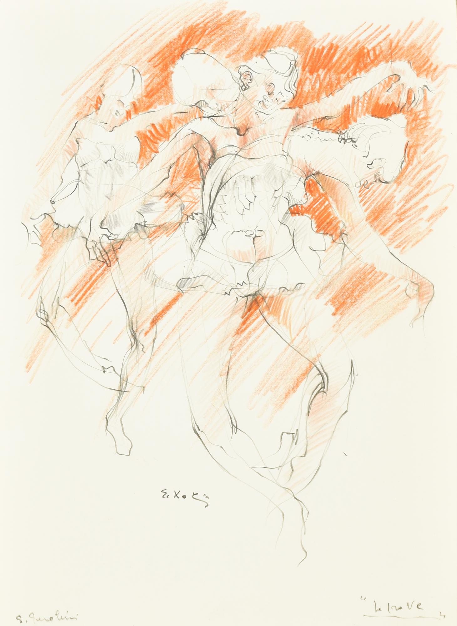 Giuseppe Perolini LE PROVE tecnica mista su carta, cm 35x25 firma e titolo